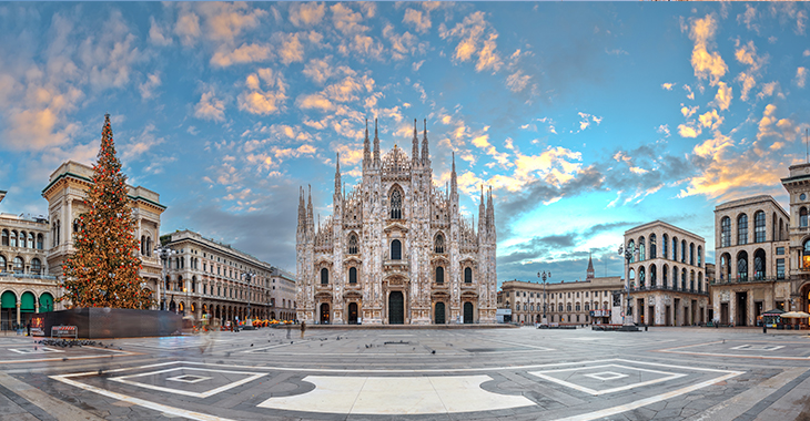 Your morning tour will reveal the highlights of Milan, beginning at Piazza del Duomo, home to the breathtaking Gothic cathedral. You will then stroll through the elegant Galleria Vittorio Emanuele II, pass by La Scala Theatre, and explore the surroundings of Sforza Castle.A delicious lunch of Milanese specialties will follow. Afterwards, the afternoon will be free for you to enjoy and prepare for tomorrow’s departure.